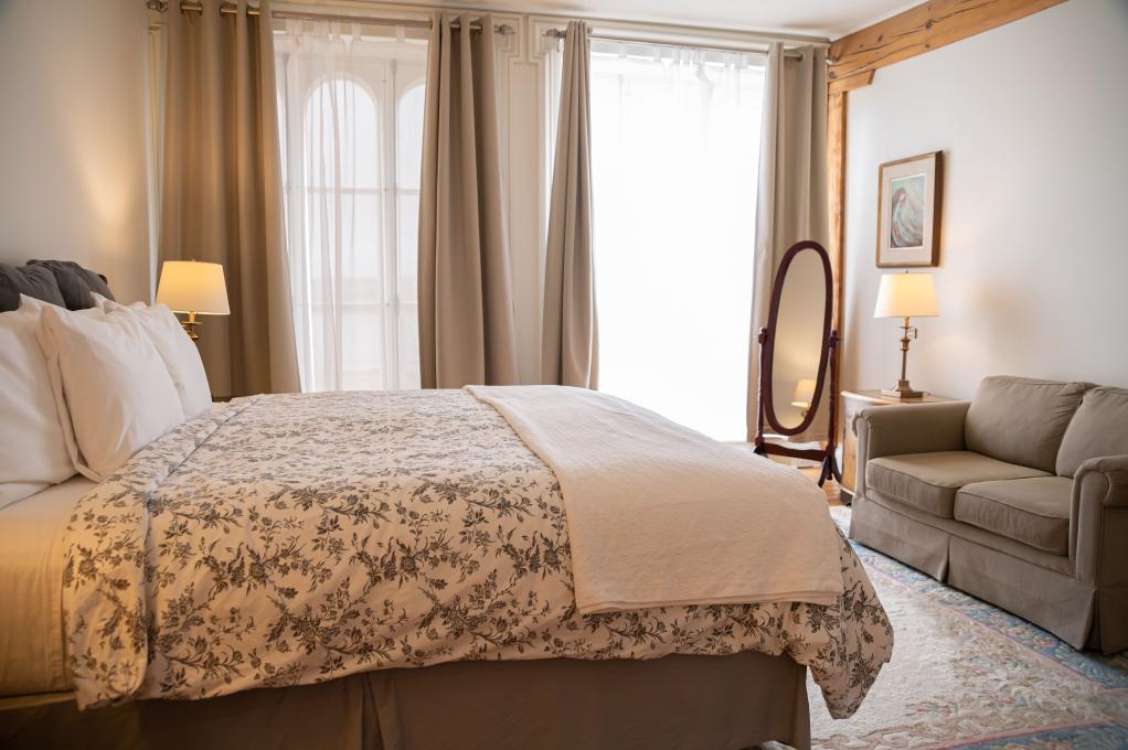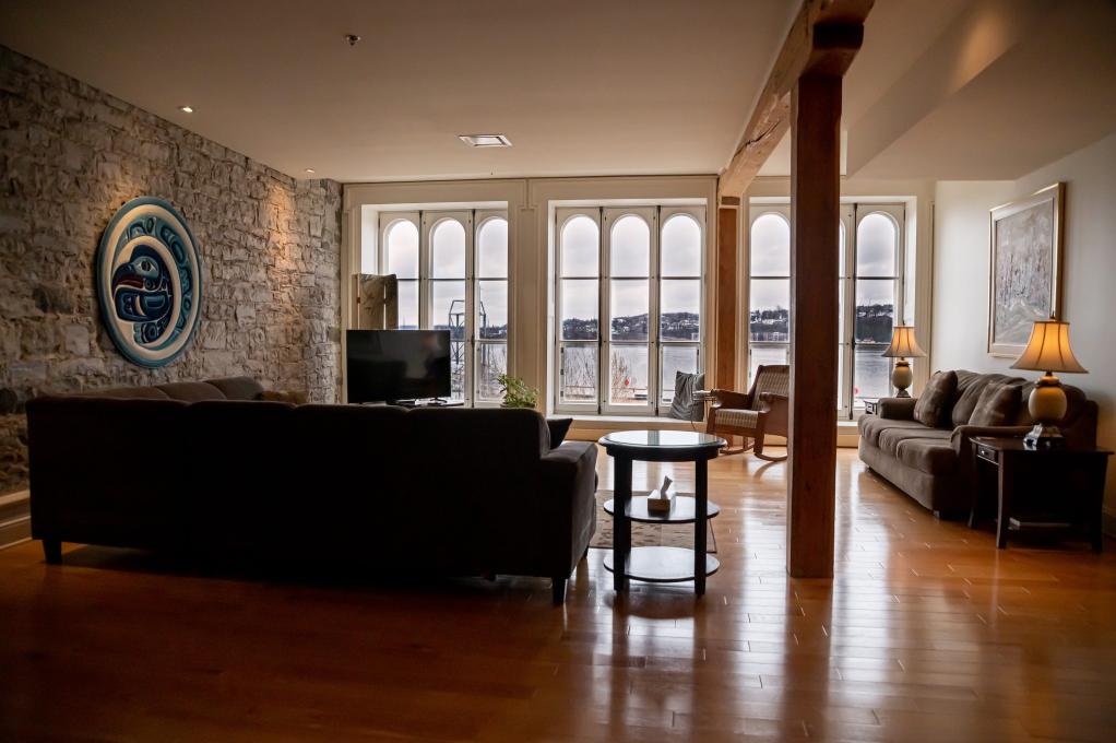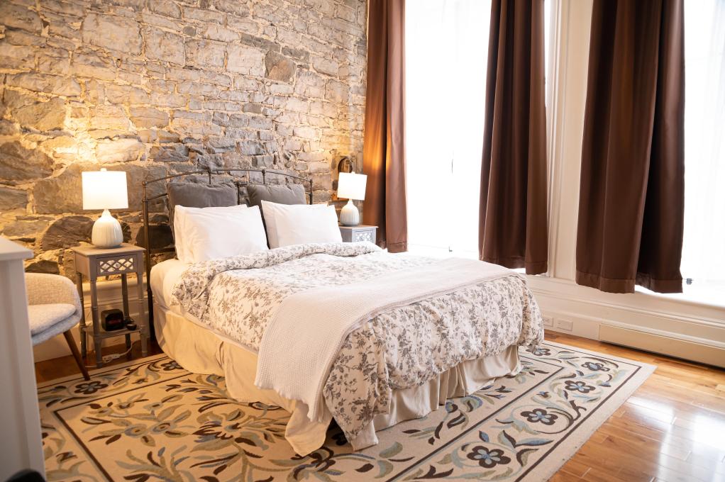 High-end tourist accommodations in a beautiful, completely rejuvenated and renovated building located in Old Québec at the foot of the Château Frontenac and across from the cruise liner terminal. The apartments are classified four stars by the Corporation de l'industrie touristique du Québec. Each of our apartments comprise the following: one, two or three magnificent bedrooms with private bath, boudoir, fully-equipped kitchen, living room, dining room and antique furniture.