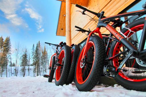 Fat BikingThe village at Au Chalet en Bois Rond has nearly 15 km (9.3 miles) of trails through the forest and snowy paths adapted to fatbikes the entire family can enjoy. Bring your own fatbikes during your stay this winter! We also have fatbikes for rent to explore our village and trails. A fun outdoor activity for your vacation! The fatbike rentals are in the following sizes: child (20") and adult (XS-S-M-L).