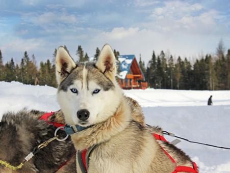 Our pack of sled dogs, located right in the village, is a must-see. Enjoy an exciting trip through the wilderness! The package includes a 1 h 30 minutes dogsled ride, 60 minutes on the trail, musher training, a professional guide, 2 people per dogsled, photo break, puppy meet and greet, and hot chocolate upon your return.