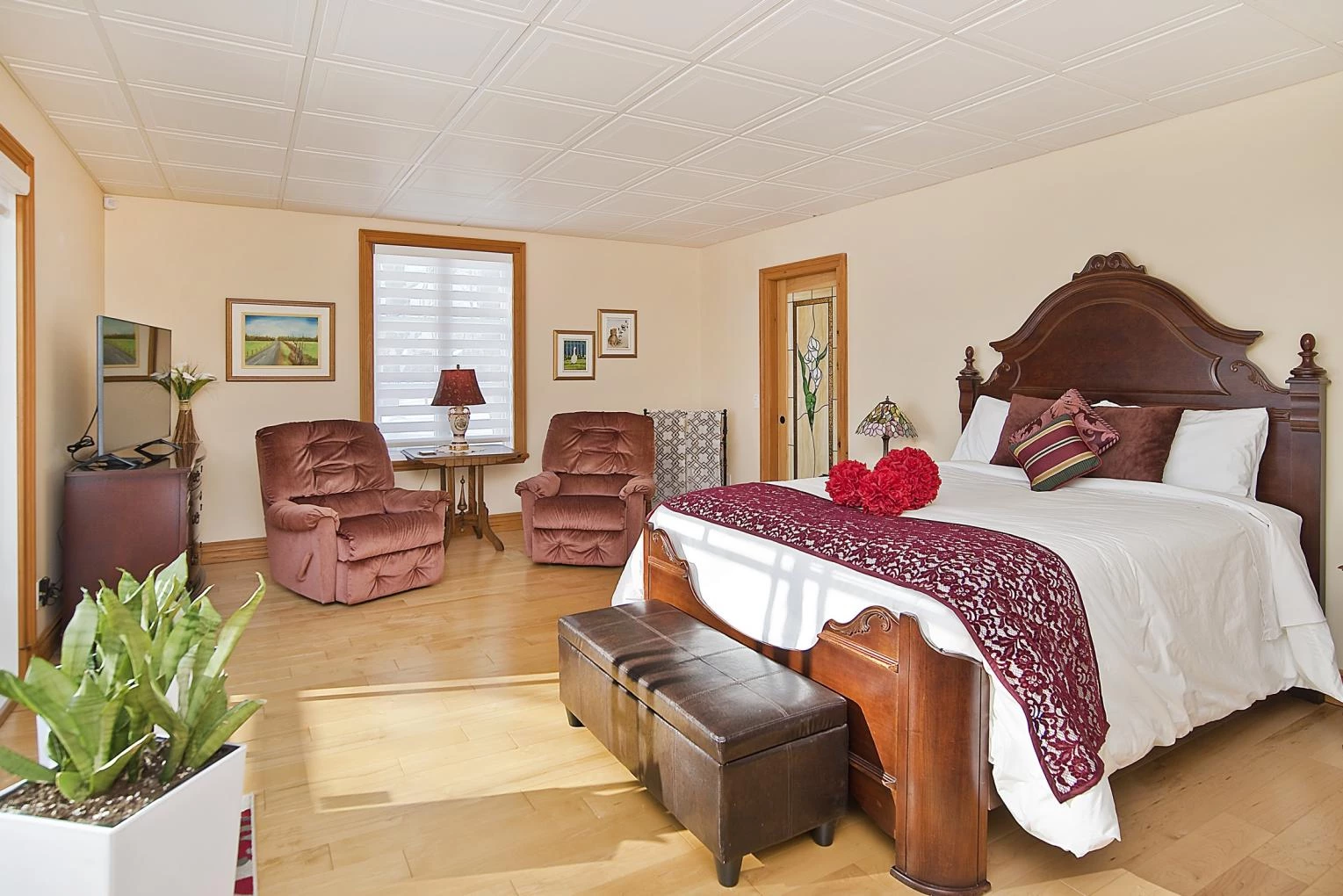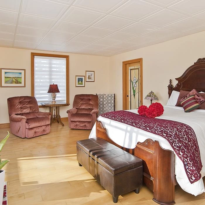 Gîte Au Pélican de l’Île, located in Saint-Laurent on île d'Orléans. Beautiful, spacious, comfortable, and bright rooms. Large private bathroom, furnished balcony with hanging rattan chairs and a gazebo-covered patio set. River view. Garden, swing, outdoor terrace with fireplace. Breakfast included. Relaxation guaranteed. You’ll stay in a charming and vibrant small community. Marina, recreational park, grocery store, and shops nearby.