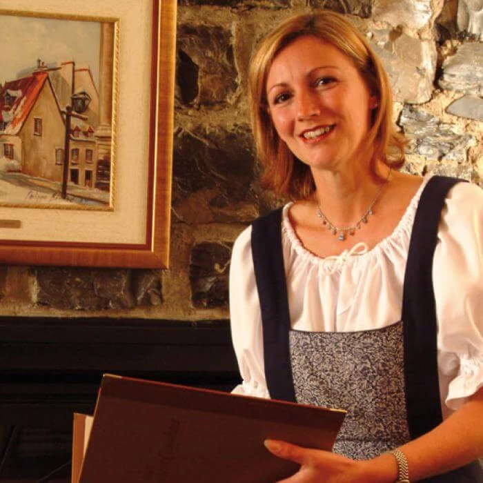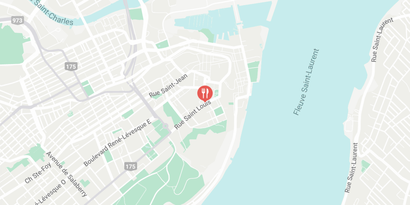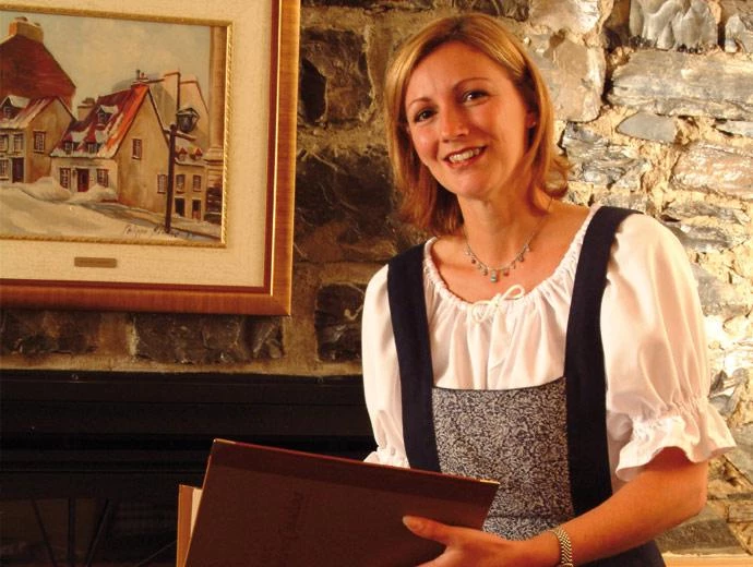 The oldest house in Québec (1675) has been transformed into a restaurant. Five dining rooms, decorated with antiques and collectors' items. Authentic Québec cuisine featuring regional produce. Professional and courteous service under the same management for the past 40 years. Capacity: 128 places. Private salons for groups and receptions. Reservation service.
