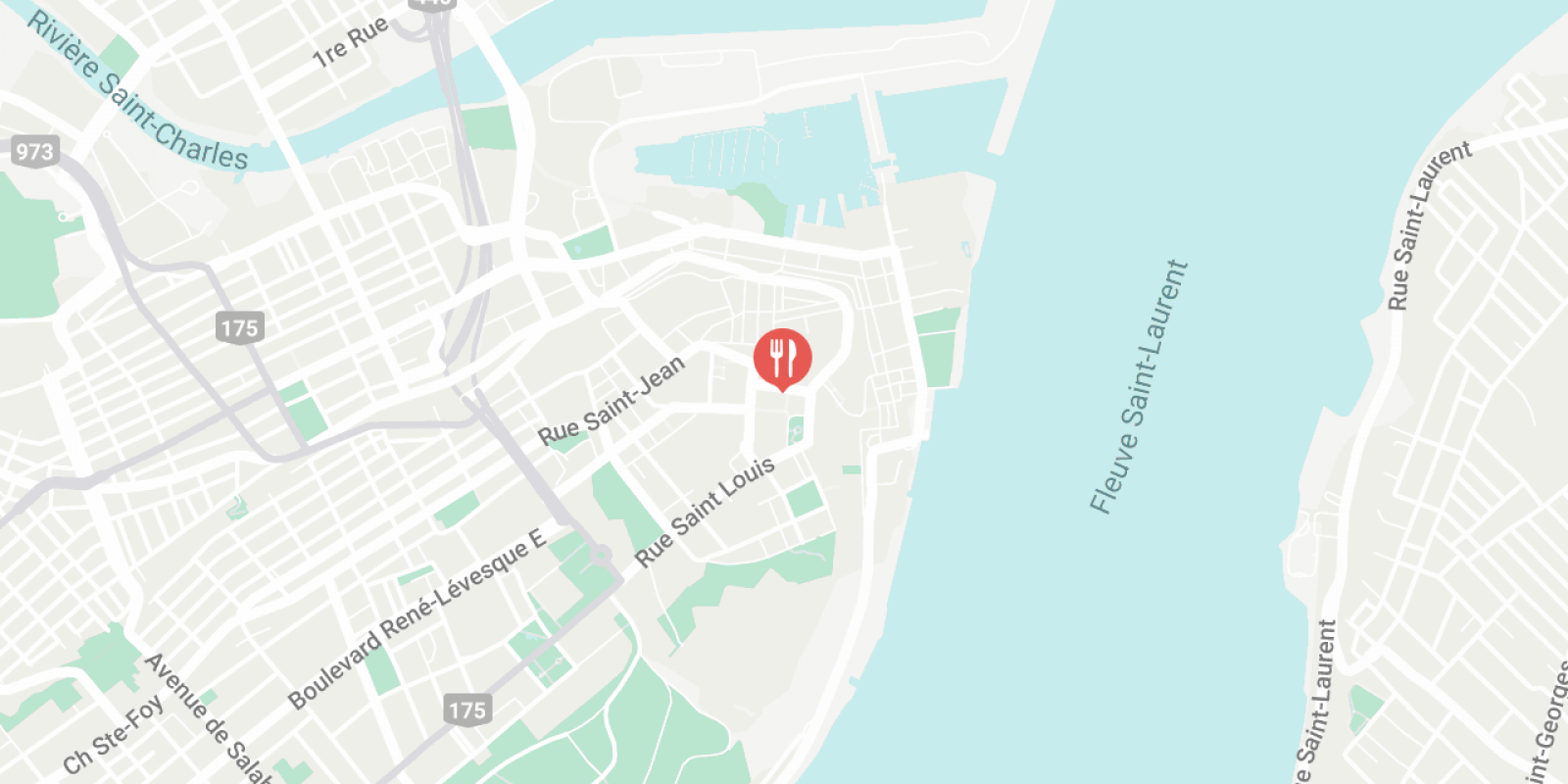 A few steps away from the Château Frontenac, the Café Buade invites you to taste its succulent prime rib of beef "au jus". The oldest restaurant in Québec City (1919) can accommodate up to 250 people and groups of 20 to 125 people in its splendid dining rooms. An inviting ambience and excellent quality/price ratio make the Café Buade one of the best rated restaurant in Québec.