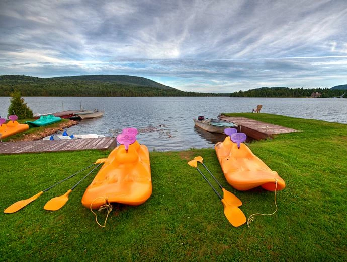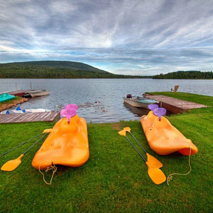 Luxury log cabins and a traditional cottage in a peaceful setting by a gorgeous lake in Saint-Tite-des-Caps. You may take one of our kayaks, canoes or motor boats out on the lake. In the winter, we can lend you snowshoes. Only 15 minutes from both the Massif de Charlevoix and the Mont-Sainte-Anne ski resorts. The picturesque snowshoeing and hiking trail Sentier des Caps is only 2 minutes away.