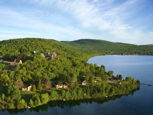 A wilderness resort on the shore of St. Joseph Lake. Perfect for business meetings. Stay in a rustic lodge or cottage. Dining area, bar and indoor swimming pool.