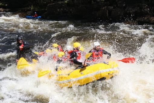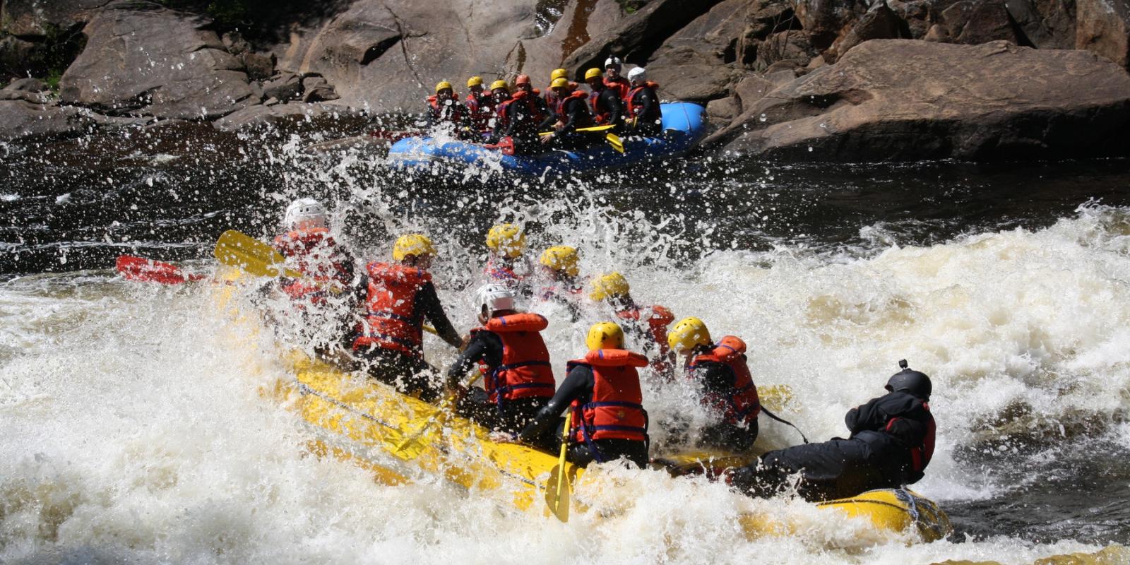 Excursions Jacques-Cartier offers a 9 km rafting route on the waves of the Jacques-Cartier River (Parcours Tewkesbury - Valcartier).