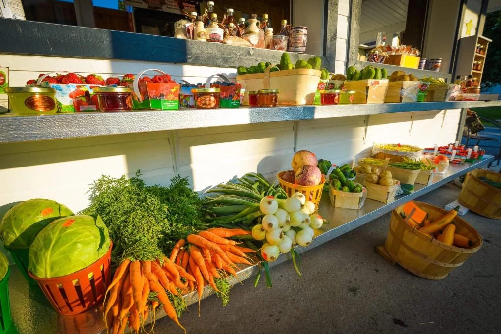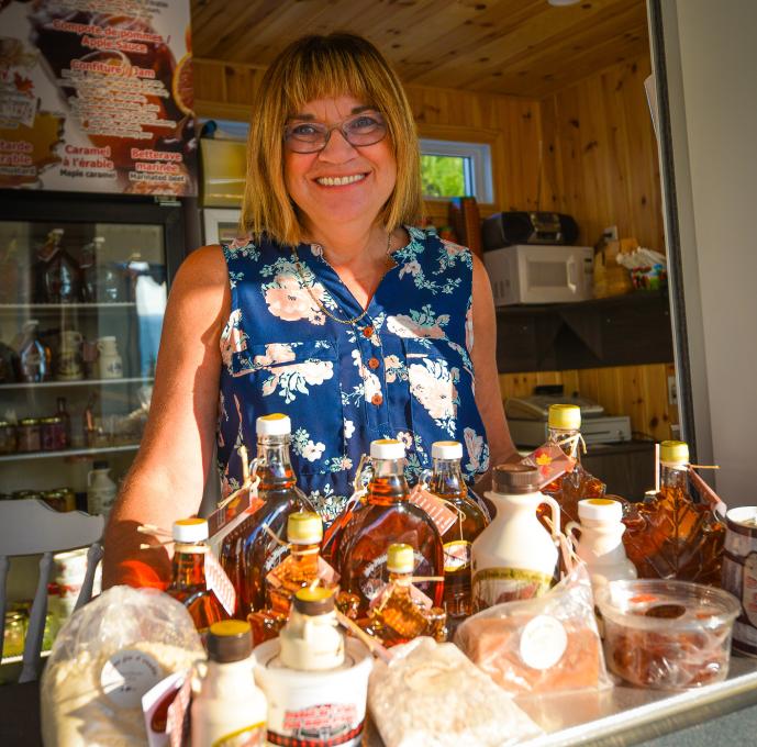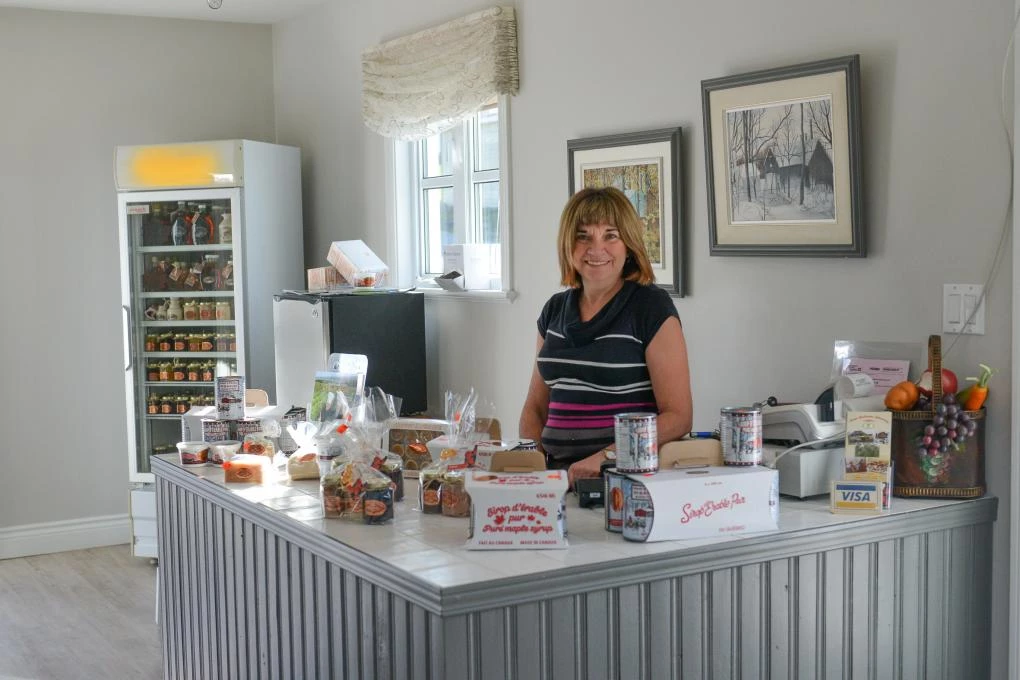 Holder of Relais du terroir™ certification. Try our delicious cucumber jelly. Our homemade jams, jellies and pies are made on the premises with the fruit we grow. Maple products available, including syrup, taffy, caramel and granulated sugar. We also sell a variety of fresh fruit and vegetables. Gift baskets. Pick your own pumpkins, strawberries, raspberries and apples. Small animales.