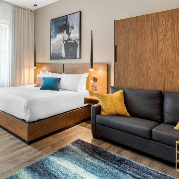 Nestled in the heart of the Saint-Roch district, the Royal William is but a short walk from Old Québec, the Convention Centre, the Old Port, Gare du Palais (bus and train station), and ExpoCité. The hotel has 44 recently renovated, spacious and cozy rooms and studios, the latter with kitchenette. The four meeting and reception rooms onsite can accommodate groups from 8 to 80. The ideal choice for a successful business trip or unforgettable getaway in Québec City. Welcome to the Royal William!