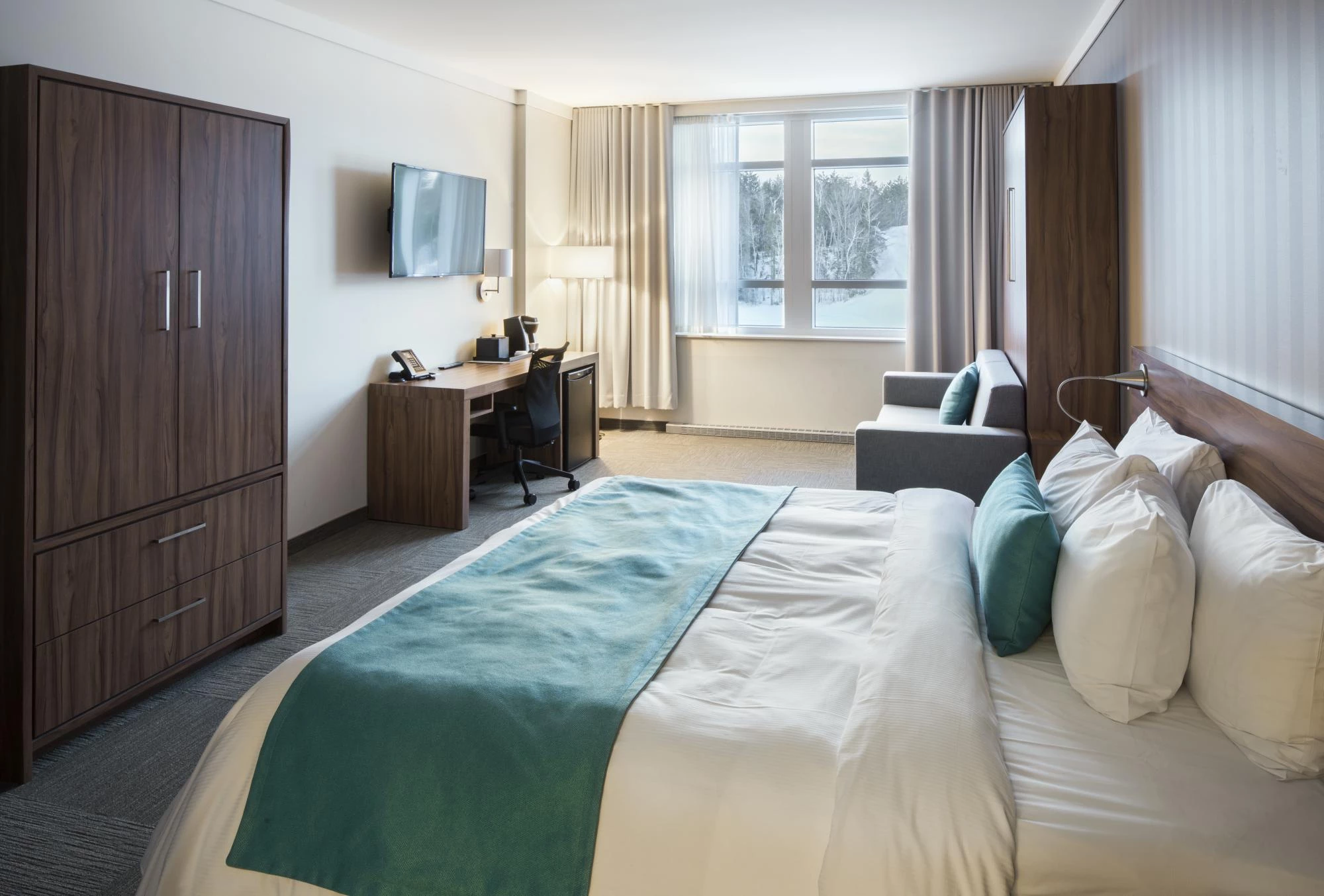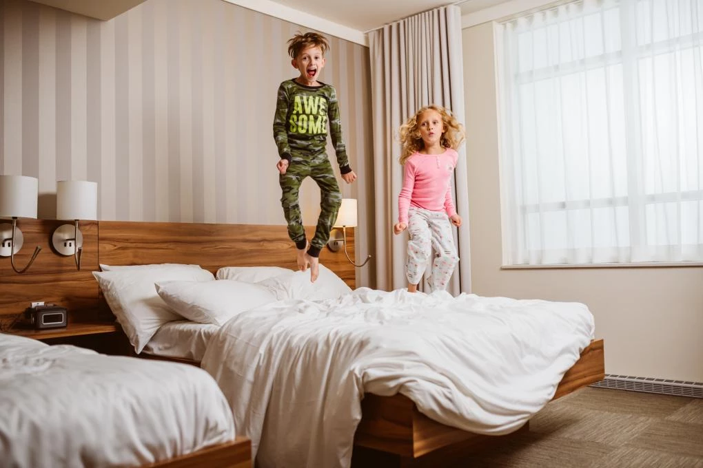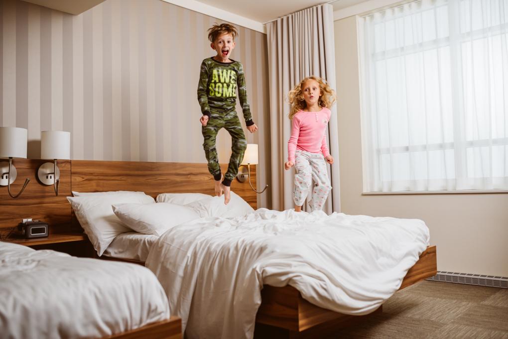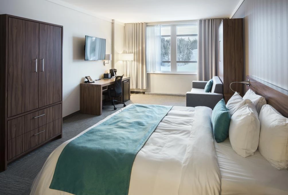 This hotel has more than 150 rooms and suites that can accommodate 4 to 6 guests per room. The following amenities/activities are available onsite: restaurants, indoor and outdoor (summer) waterpark, Winter Playground, Hôtel de Glace/ ice hotel (winter), Aroma Spa (hotel spa), giant arcade room, gym and meeting rooms. Free Wi-Fi throughout the hotel.
