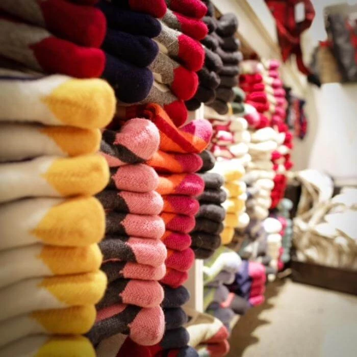 Located inside Château Frontenac, Lambert & Co. has a wide selection of fine products made in Québec. These include striped woolen socks in the hotel's colours by Bas du fleuve, the Château's blue tartan (sold exclusively at this boutique or online at lambertco.ca), handmade woolens, and the traditional red and black tartan. Local and international shipping.
