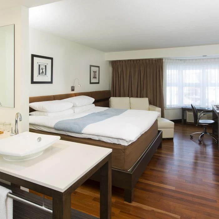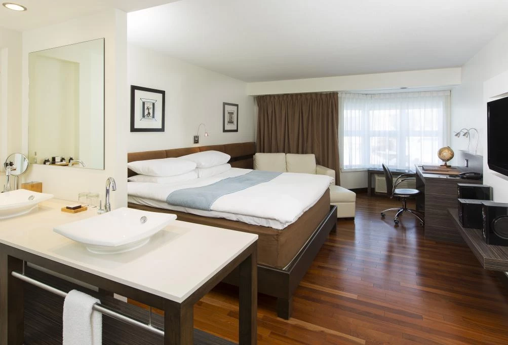 A destination hotel whose beauty is enhanced by its many gardens, magnificent swimming pool open three seasons and hot tub open year-round. Tastefully appointed rooms & suites and refined cuisine. You are well served by the Amerispa Wellness Centre and the hotel's exclusive partnership with the prestigious La Tempête golf course. Only 5 minutes away from the airport and very close to downtown. Live the Bonne Entente Experience.