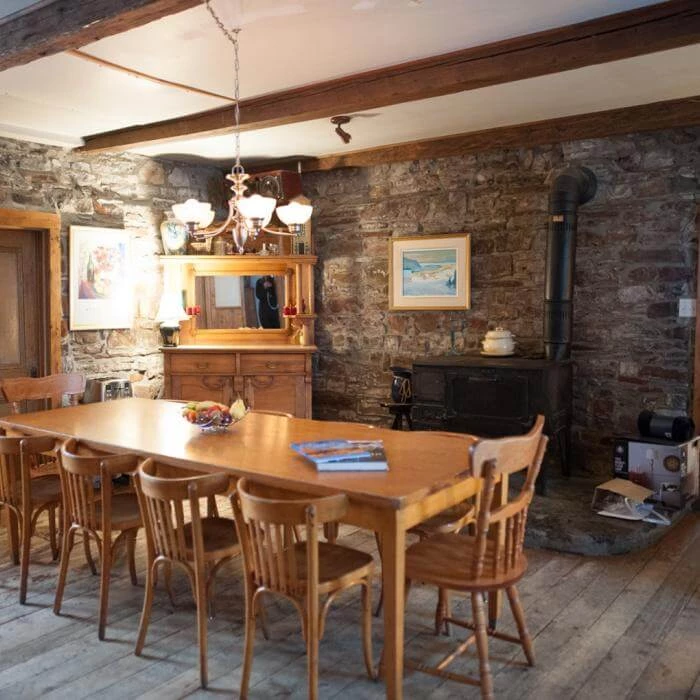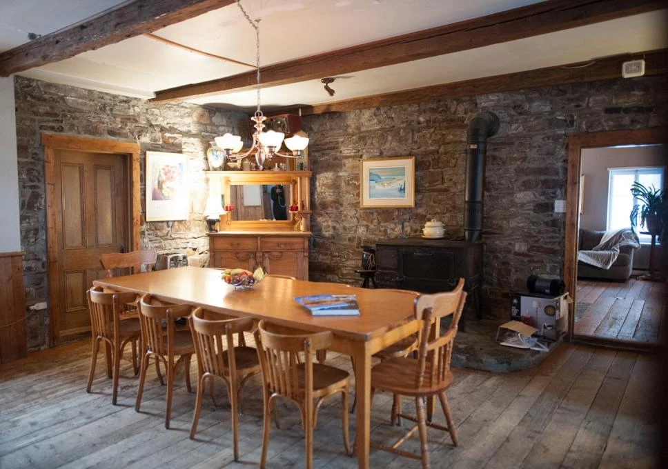 You can expect a warm welcome at this B&B located in a house built in 1740. A gorgeous view of the St. Lawrence River and Île d'Orléans. Near Mont-Sainte-Anne (10 min.) and the Massif (30 min.). Five bedrooms, each with private bath. Breakfast served in your room. The ideal place for family get-togethers and small business meetings for groups of up to 20. You may go hiking, snowshoeing or cross-country skiing on the extensive grounds. Lounge with fireplace. Snowmobile trail accessible from the B&B.