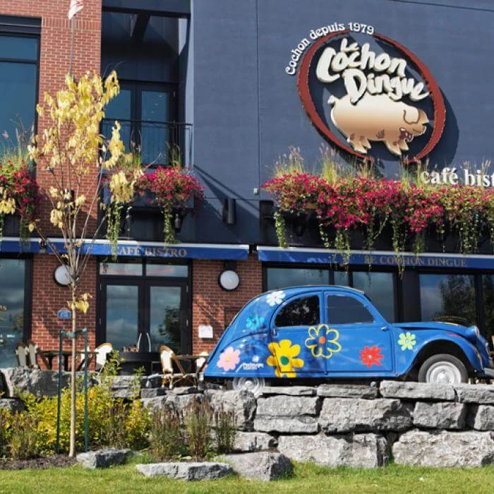 A European-style bistro in a revitalized district. Two levels of typical Cochon Dingue charm, a cozy lounge and large sunny terrace, not to mention our popular breakfast selections, steak and fries, spare ribs, Magdalen Islands pot pie and sinfully delicious desserts. Menu for children under ten.