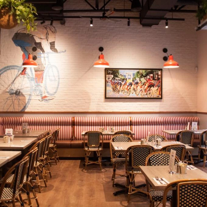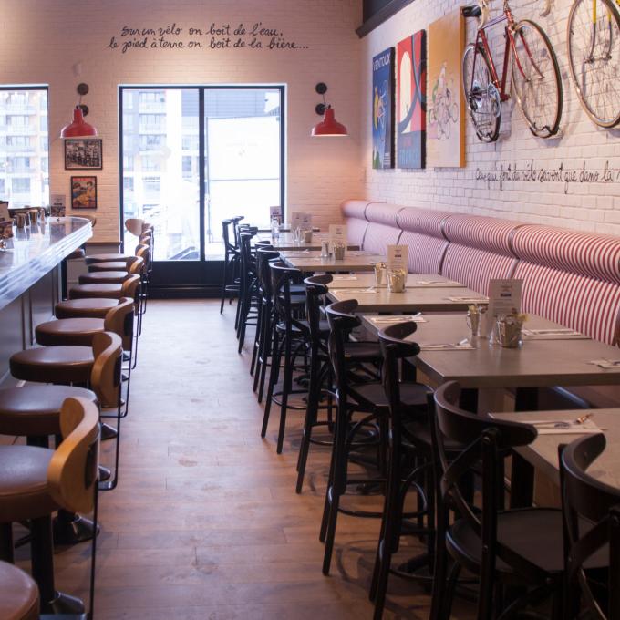 After 25 years on Maguire, the Cochon Dingue restaurant moved to Place Ste-Foy shopping centre in the fall of 2017. The team has doubled in size, and the premises feature a more spacious and modern dining room that incorporates cutting-edge technology! This Cochon Dingue location has distinctive décor inspired by the Tour de France, an attractive bar and environmental technology. A pleasant eatery in a dynamic and expanding part of town.