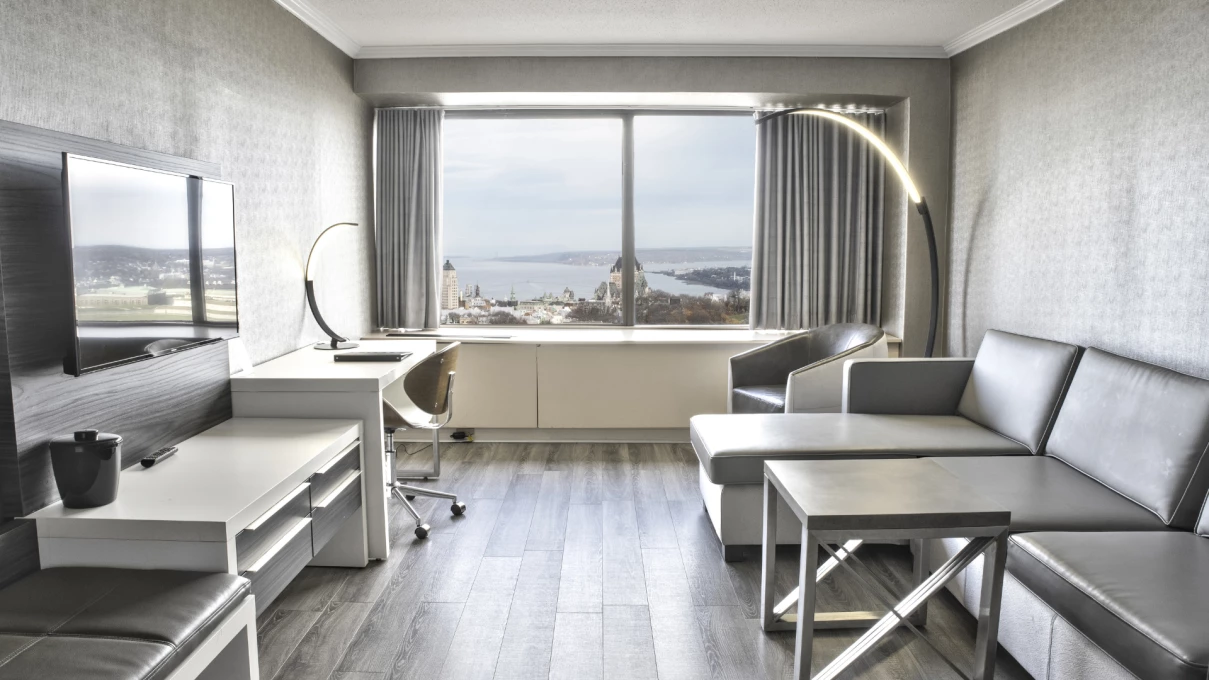 Hôtel Le Concorde Québec, in the heart of downtown Québec City, has over 400 rooms and suites. Many museums, activities, attractions and major events nearby. The hotel affords a beautiful view of the majestic St. Lawrence River, as well as Québec City and its abundance of parks and green spaces, including the Plains of Abraham. Free Wi-Fi is available in every room and the hotel's common areas.