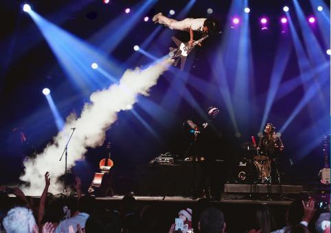 This is an amazing interactive show featuring acrobatic music so to speak. This show was designed from the ground up for for conventions.