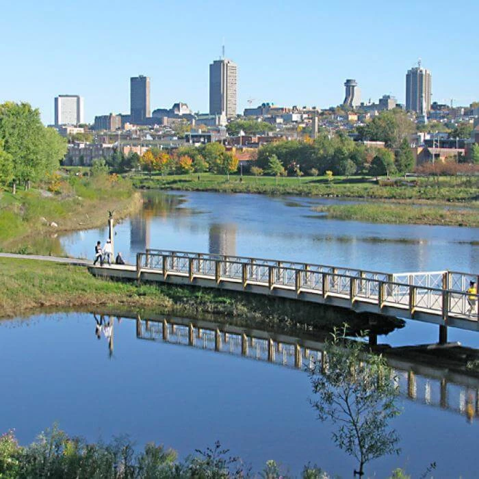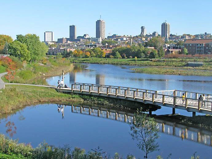 Explore a beautiful 32-km (19.2-mile) walking trail that runs along the entire length of the St. Charles River, stretching from St. Charles Lake to the Old Port. Many species of birds and plants can be seen along this trail, which leads to a number of parks and historical sites. It may be used year-round by pedestrians, while inline skaters and cyclists can travel along the 4-km (2.5-mile) paved segment from early May to late October. This same portion of the trail is groomed for walking and cross-country skiing in the winter. It was at the mouth of the river where Jacques Cartier spent the first winter on Canadian soil in 1535–36, and it was also there that the Aboriginal village of Stadaconé once stood. Those strolling along the river will encounter the Cartier-Brébeuf National Historic Site of Canada, as well as picturesque waterfalls and a canyon near the Wendake reservation.