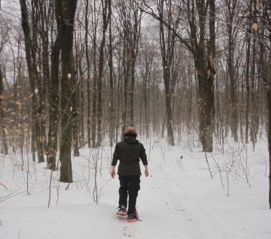 The Parc naturel regional de Portneuf offers two sectors, during the winter season, for snowshoeing. The first sector offers hiking trails along the cliffs and the river. It's called the 'Secteur des gorges'.The trails are easy. You will also have the chance to see the beautiful ice wall used for ice climbing. Then, there is also three loops at the 'Centre de ski de fond Les Portes de l'Enfer' which offers more difficult trails. This Sector is mountainous for a sporty hike.