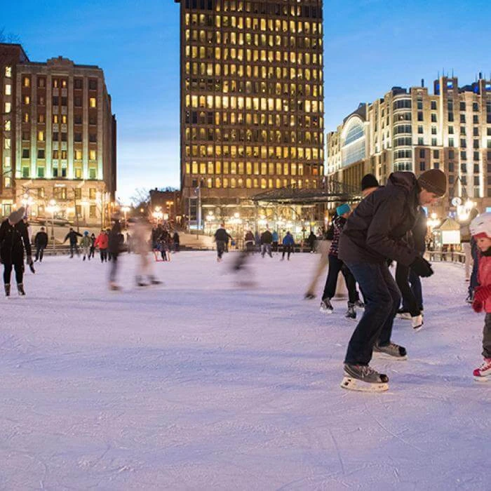 Outdoor skating rink with a system for keeping the ice frozen during warmer weather. Open from mid-November to mid-March. No admission fee. Skate rental and sharpening services onsite.
