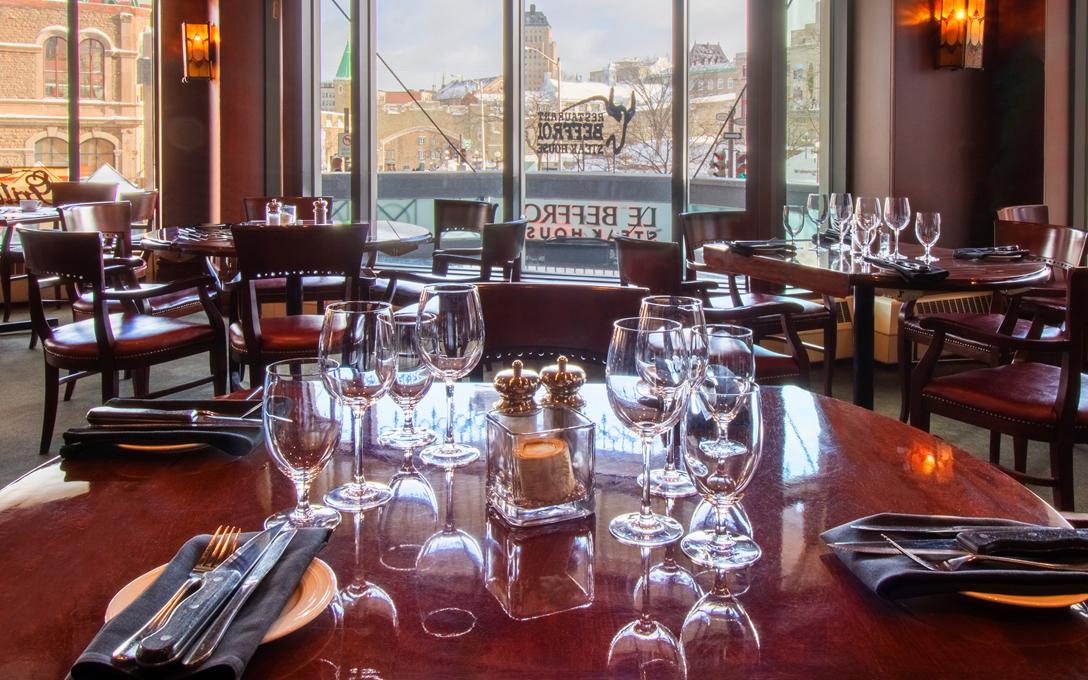 Located just steps away from Old Québec, our restaurant offers an exquisite selection of grilled meats and seafood. Savour your meal while enjoying the breathtaking view of St. John’s gate and Place D’Youville, and let yourself be charmed by the atmosphere, aged meat, cooking over maple charcoal, and much more.