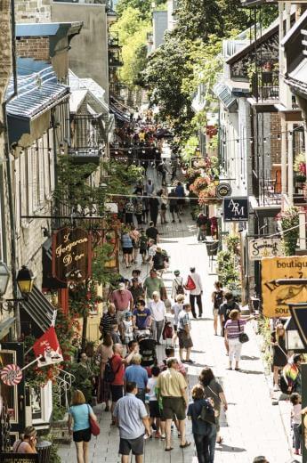 From Place D'Youville, head up the street with a perfect blend of culture, religious heritage, and fine food. A stroll along rue Saint-Jean is a must for anyone visiting Québec City. Starting from centrally located Place D’Youville, a string of boutiques, restaurants, churches, and historic buildings create a unique and eclectic ambiance. And when the street is closed to traffic on weekends in summer, pedestrians take over and a festive atmosphere reigns.