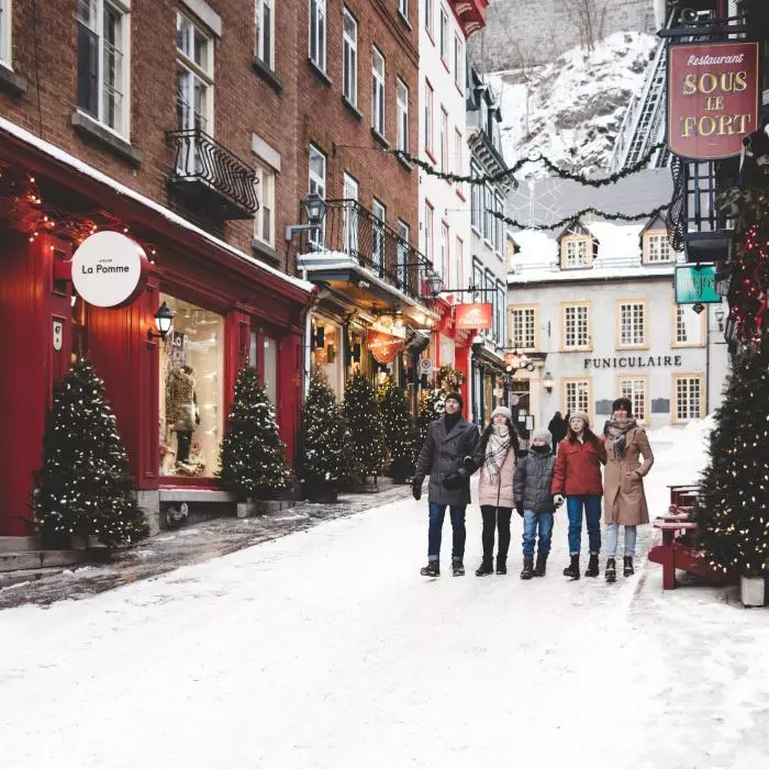 Beautiful in summer, Petit-Champlain transforms into a magical winter wonderland from the end of November to mid-February, with fresh snow clinging to the 18th-century buildings, festive decorations and trees along the cobblestone street. Shop for unique souvenirs created by Québec artisans, visit Santa Claus, listen to carollers, enjoy the outdoor fire pits, and soak in the atmosphere as you experience the living Christmas card that is Petit-Champlain.