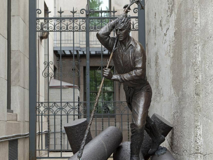 Location: 65 rue Sainte-AnneSeeming to balance on the logs in rough water, the log driver incarnates the courage and tenacity of those who built this province. He also hearkens back to the golden age of the logging industry, of which the Price family were pioneers.
