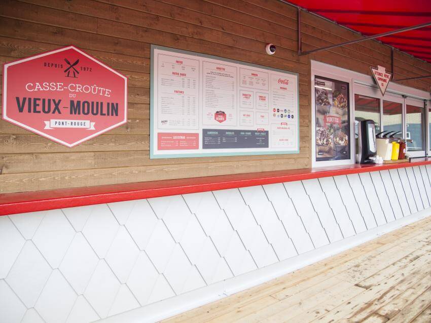The Thivierge Family has been serving its loyal customers a delicious snack shack menu from March to November since 1996. The food is homemade, including their tasty meatloaf, while the potatoes come from Bellechasse, just over on the other side of the river, and are peeled onsite each morning.