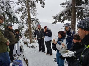 Snowshoe rentals available: YesAt Station touristique Duchesnay, there are lots of different intersecting trails, so if you end up wanting to take it easy, you can always cut out early and head back to the cabin. The Aventurier is a trail that takes you through a maple and yellow birch grove and into a mature forest. The first viewpoint is at Lac Jaune (Yellow Lake). From there, you’ll ascend to a second viewpoint, called Le Sommet (“the Summit”). On the return trip, you’ll leave behind the snow-covered evergreen trees and cross several of the centre’s lovely cross‑country ski trails.