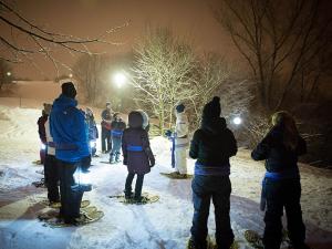 Snowshoe rentals available: YesParc des Grands Jardins is a provincial park that’s about 125 km (78 miles) from Québec City. The park owes its stunning geological features to a meteor that crashed there millions of years ago as well as the passage of a few monumental glaciers. The Mont-du-Lac-des-Cygnes trail is something of a classic and a fairly easy trip. The first part of the trail winds through a beautiful forest of snow‑covered evergreens. The trail then takes you up to the bare-rock summit with its absolutely spectacular views.
