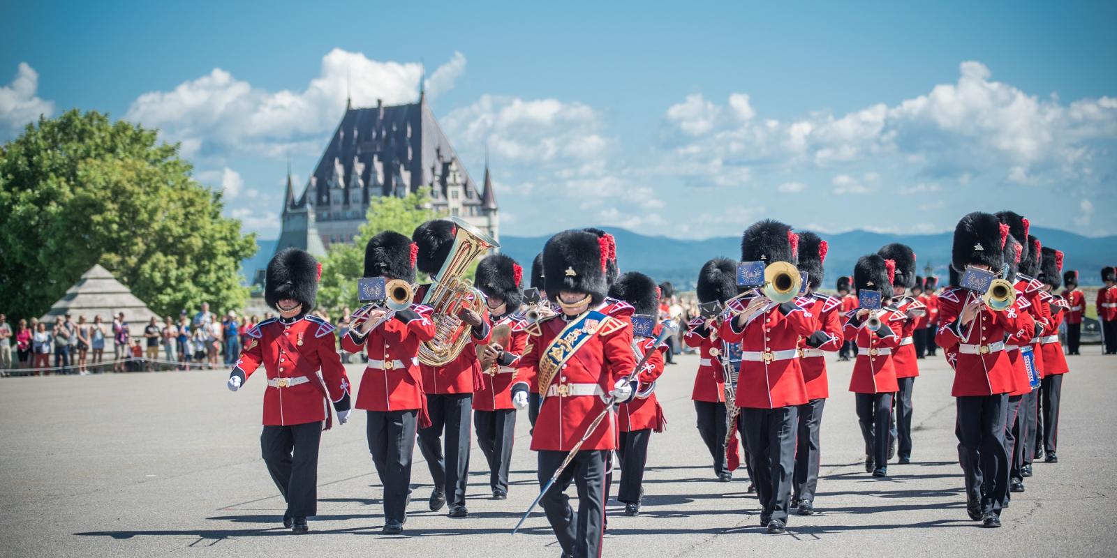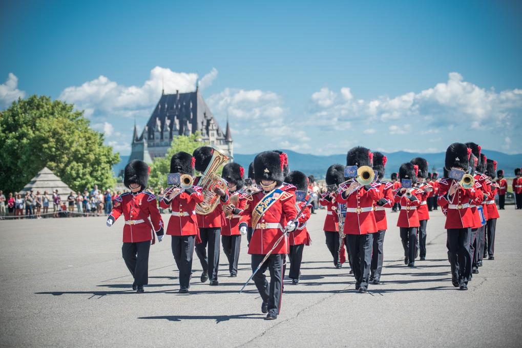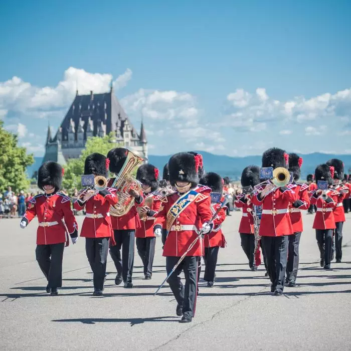 Decked out in their scarlet regimental dress and bearskins, the Royal 22nd Regiment musicians offer musical performances on the parade ground in the heart of the fortress.