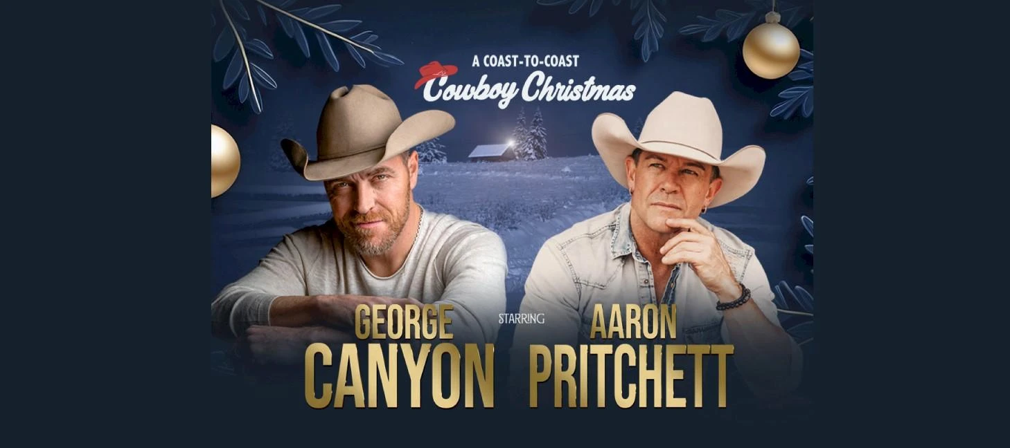 CCMA winners, and beloved Canadian country superstars George Canyon and Aaron Pritchett unite for their coast to coast Cowboy Christmas tour. With countless accolades between them, and over 25 years of hits, the pair will come together to treat fans to some of their own chart topping songs, as well as some all-time favorite Christmas classics. Truly a show not to be missed, in celebration of the Holiday season.
