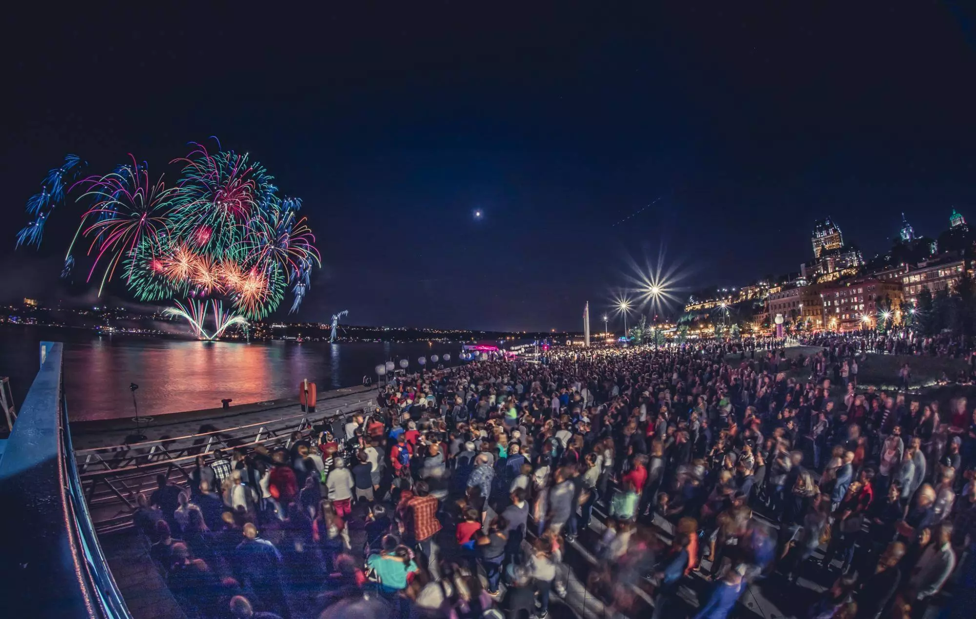 Dufferin Terrace: This iconic boardwalk at the foot of Château Frontenac lets you admire the fireworks in a lively and vibrant atmosphere.