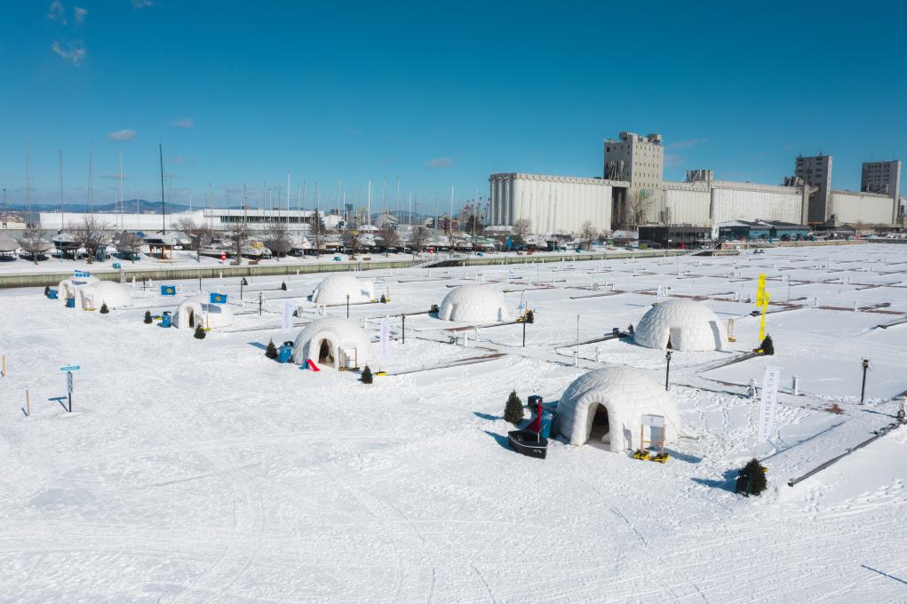 The Village Nordik at the Port of Quebec is an unprecedented urban winter event! Ice fishing in the heart of downtown Quebec, in the Louise Basin. Fishing in inflatable igloos or directly on the pool.