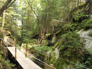 In spring, it’s best to wait a few weeks after the thaw before heading out into the forest. Most trails are in good hiking condition by mid-May. Bring a bottle of mosquito repellent.
