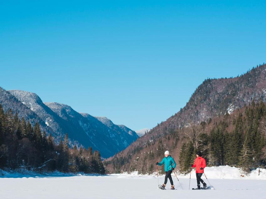36.97 kmStrap on your snowshoes and head out to explore Parc national de la Jacques-Cartier, one of Québec’s most breathtaking glacial valleys. With 11 trails totalling over 75 kilometres, the park serves up incredible scenery and lofty plateaus that overlook the frozen river.