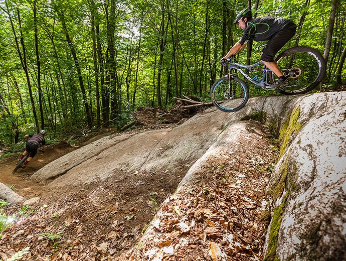 A relatively easy loop connects most of the trails. The climbing trails, just steep enough, allow easy access to the descents such as the Kamasutrail, ideal for intermediate riders or Pad Religion and Upper Valkyrie, perfect for the most skilled mountain bikers. The latter has been described, by none other than the famous trail development company, Whistler’s Gravity Logic, as being « cleverly designed and progressive, feels like a Squamish trail », nothing less!