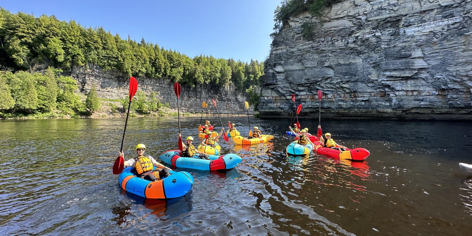 Adventure enthusiasts will be thrilled with Rivière Concept's unique white-water experience in a packraft—a lightweight, stable, and unsinkable hybrid between a kayak and a raft. Regardless of the weather, you'll explore the stunning Jacques-Cartier River, navigating a descent bordered by vertical cliffs reaching up to 75 meters high.