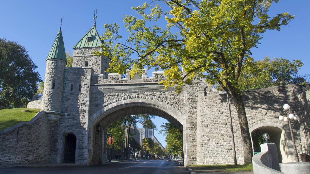 The Saint-Louis Gate is one of the entry points in the fortified walls surrounding Old Québec. On the inside of the walls, rue Saint-Louis stretches from the gate to Château Frontenac, while on the outside can be found the Parliament Building and Grande Allée.