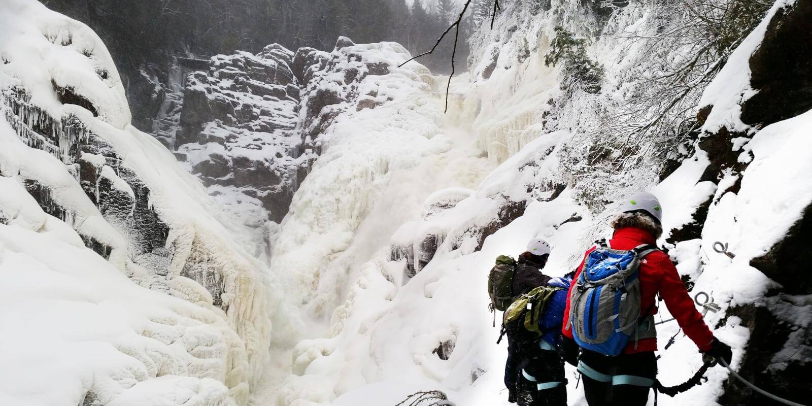 Vallée Bras-du-Nord has via ferrata routes that take you from pitch to pitch all the way to a majestic waterfall, with stunning views of the winding river and surrounding mountains and cliffs all around. There’s a via ferrata and zipline combo perfect for families with children 11 years or older. If you want to pack even more action into the adventure, other packages include rappelling.