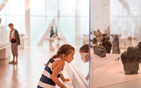 • A young girl looks through a display case in an exhibition at the Musée national des beaux-arts du Québec.