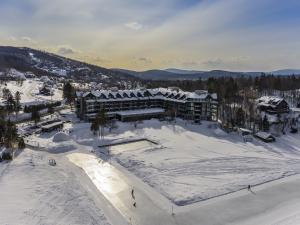 This fully renovated resort hotel has 211 rooms, including 37 luxury apartments and big units with full kitchens. If you don’t feel like cooking, treat yourself to the local fare at Bistro Nordik. You can also cap off your day on the slopes or trails with some time in the pools.
