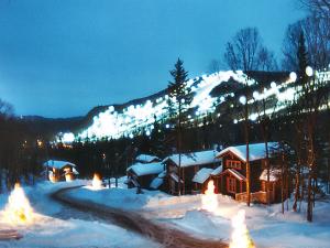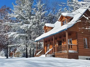 The resort gives you access to five different lakes and a beautiful river, so there’s tons to do outdoors in every season. Try the traditional sugar shack in the spring and order prepared meals ready to heat and serve in your cabin.
