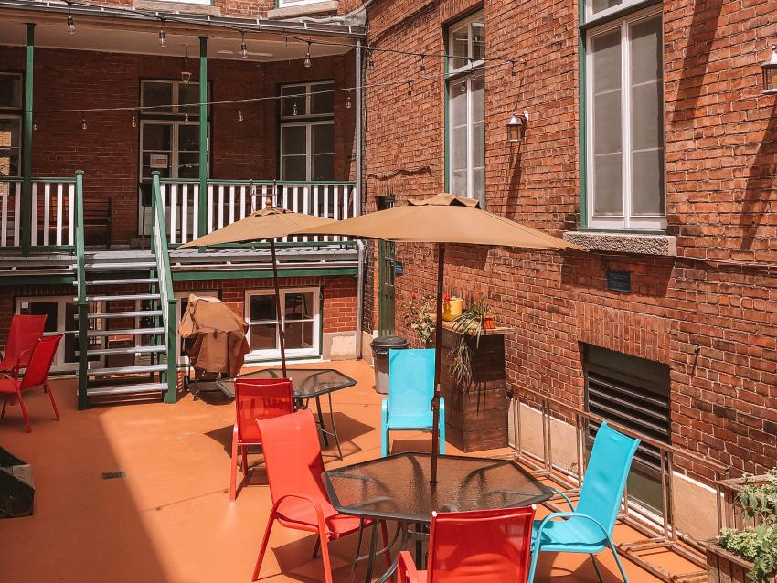 Located in a big Victorian house on a street famous for its restaurants and nightlife, QBEDS Hostel has comfortable rooms and dorms with tons of historic cachet. There’s everything we love in a hostel: dorm beds with curtains for privacy, a bar, a movie room, games rooms, an indoor forest full of hammocks, a big reading podium, and more. We’d even go so far as to say it’s the best hostel in Québec City!