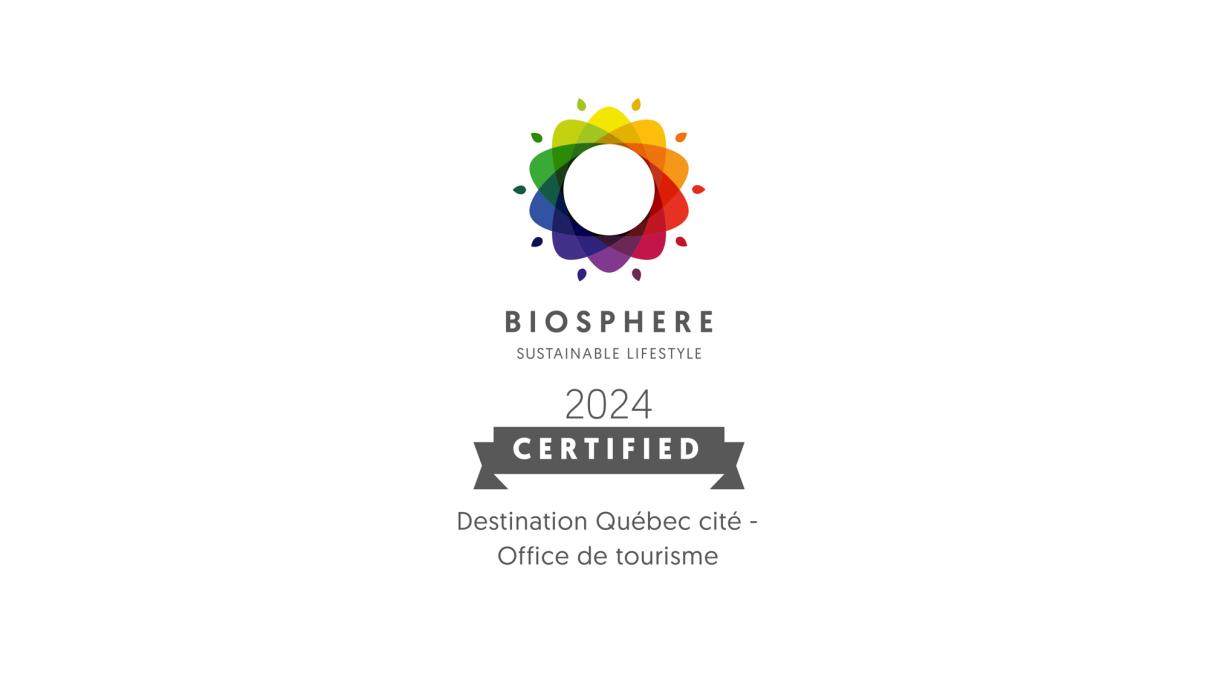 Destination Québec cité est fière d'annoncer qu'elle est maintenant certifiée Biosphere, devenant ainsi le premier office de tourisme du Québec à recevoir une certification écoresponsable pour ses opérations.