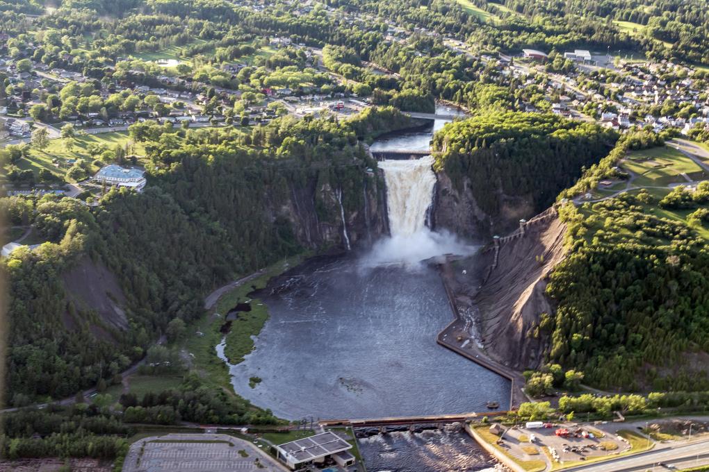 Le survol de Québec, de la Chute Montmorency, du fleuve Saint-Laurent, du Château Frontenac, des montagnes de la Jacques-Cartier et d'autres attraits de la région.