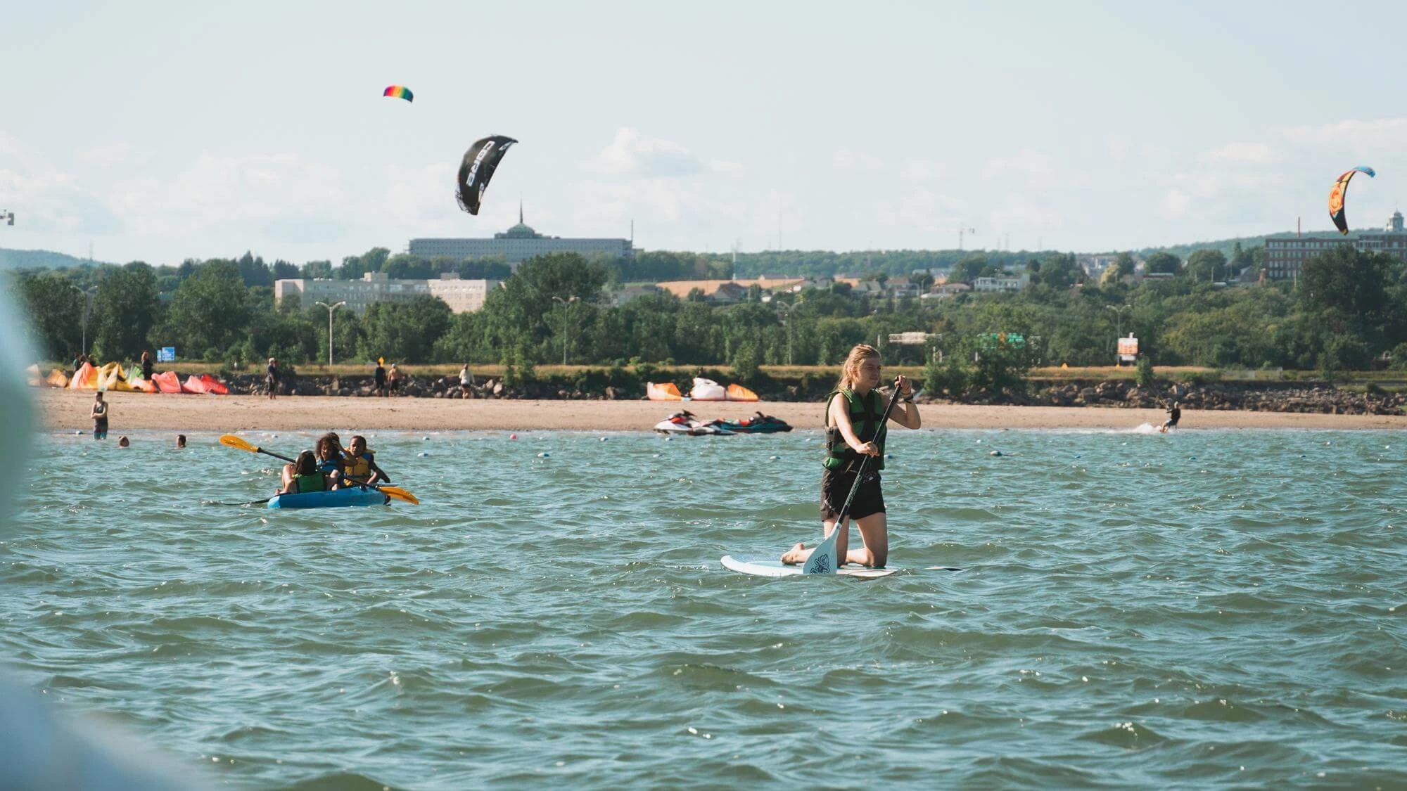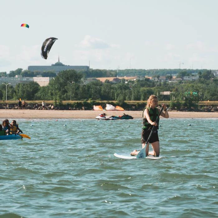 Offrant un accès au fleuve Saint-Laurent, le site propose une ambiance des plus festives. Plusieurs activités nautiques peuvent y être pratiquées, en plus de la baignade lorsque les conditions le permettent.