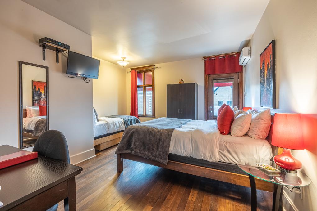 Au coeur de la plus belle rue de quartier de Québec. À deux pas du Musée national des beaux-arts du Québec, de la Grande Allée, des plaines d'Abraham et à dix minutes de marche du Vieux-Québec. Sept chambres, salles de bains privées. Rénové en 2007.