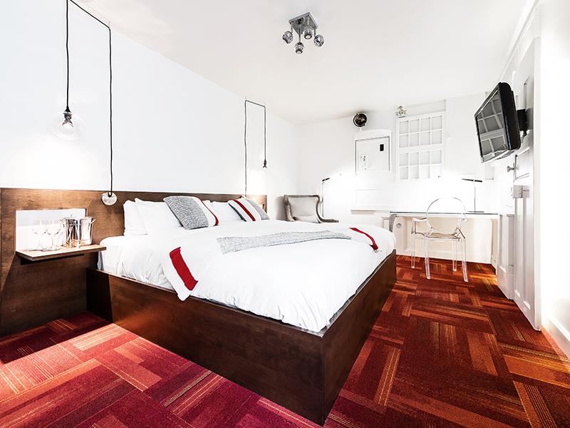 Notre hôtel est aussi créatif que notre ville. La beauté dans l'imperfection, c'est tellement Québec. Et c'est en plein notre hôtel. Ni petit ni énorme, notre établissement d'hébergement, situé à proximité du Vieux-Québec, offre 24 chambres qui vibrent d'originalité. C'est un hôtel historique et moderne dont le cœur bat au rythme du quartier des Arts de Québec. Descendez quelques marches et vivez la Grande Allée. Traversez la rue et entrez au Musée national des beaux-arts du Québec. Café à la main, partez découvrir les trésors cachés de l'avenue Cartier.