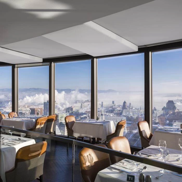 Avec sa vue à 360 degrés sur le fleuve, les montagnes et tous les attraits touristiques de la ville de Québec, le Ciel! Bistro-Bar propose tous les jours un véritable spectacle à vous couper le souffle. Situé au 28e étage de l'Hôtel le Concorde, c’est l’endroit parfait pour savourer un terroir réinventé, pour épater la galerie ou simplement pour goûter à nos cocktails en soirée. Sa cuisine ouverte permet également d’admirer nos chefs à l’œuvre avant de déguster leurs mets divins. Bref, rien de moins qu’une expérience culinaire grandiose!