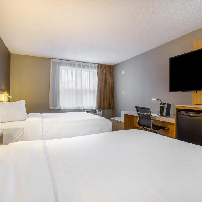 Que vous arriviez en ville après un long vol ou souhaitiez profiter d’une nuit reposante avant votre embarquement tôt le lendemain matin, le Clarion Pointe® Québec propose des essentiels rehaussés ainsi que des chambres élégantes et modernes à quelques minutes seulement de l’Aéroport international Jean-Lesage.